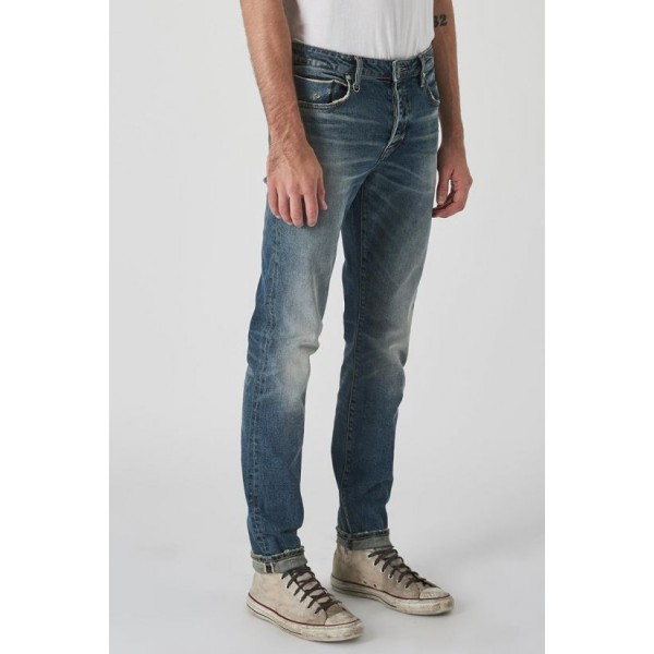 The Iggy Skinny is a slim fit with a skinny, tapered leg inspired by the jean that Iggy Pop wore on the cover of his 1977 album 'The Idiot'. ‘Radical Selvedge' is crafted from a premium indigo denim with a touch of stretch for comfort and a red/white selvedge. Stonewashed, scraped and grinded by hand and lightly tinted for an authentic vintage look. Finished with antique silver and dull silver trims. Features selvedge edge coin pocket.