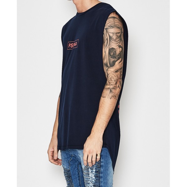 • Product Code: Nena Pasadena Slow Down Cape Back Muscle Tee Pigment Navy
