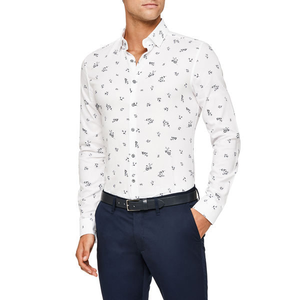 It's all style and ease with the new Politix Phineas dress shirt. Featuring cool white and navy shades, a sartorial open floral print and fine texture detail, this button down shirt is a smooth mover for any tailored occasion. Stride this floral shirt with new season chinos to bring a fresh mood to your 9-to-5.