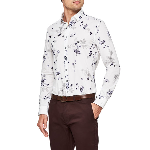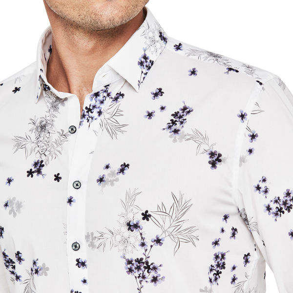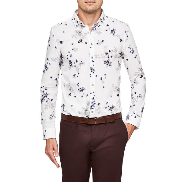 The Politix Milt floral shirt puts the suave into any modern tailored look. Stride cool with the open floral print, white and silver shades and Relaxed Fit design of this dress shirt. Crafted in extra stretch fabrics with a soft silky finish, this button down shirt looks good and feels even better.